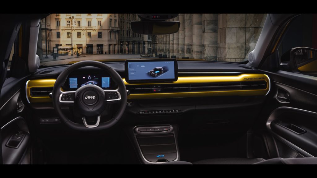 Step inside the Jeep Avenger Electric, and playfulness meets practicality in the cabin. The interior instantly captures your attention, thanks in part to the body-colored dash panel that runs the length of the cockpit, bringing a splash of colour and style between the interior and exterior. Jeep really has made a strong focus on ease of use here, with everything you need to know logically positioned and easily accessible. The choice of materials is intelligently tailored to the demands of longevity and practicality. The lower door panels are made from sturdy, durable plastic, and the upper dash/armrest consists of softer-touch material where you want to be comforted. It’s an inside that looks as though it could take a beating in everyday life, but that also happens to be a fine, welcoming place to spend time.Despite its small exterior dimensions, the Avenger surprises with a spacious and practical interior. Up front, the driver and passenger have lots of head and leg room, and supportive seats that allow a comfortable ride even on long journeys. The smart design also extends to storage, where there are a host of cubbies and compartments, a large main storage space ideal for storing personal items. The rear seats are only really suitable for children or small adults if you’re going on a long journey (although they too will be fine for taking any adult across town). The real star of the practicality show is the 380-litre boot space, which is class-competitive and more than enough for a weekly shop, a folded pram or a couple of bags for a weekend away. For bigger payloads, you can also fold the rear seats for a large cargo space, which adds more versatility.Technology is slickly integrated in the Avenger’s cabin, giving it a contemporary and intuitive ambience. At the heart of the experience is a sharp 10.25-inch touchscreen display running Jeep’s easy-to-use Uconnect infotainment system. The interface is clean and responsive with high-resolution graphics and a simple menu hierarchy that facilitates navigation. Importantly, wireless Apple CarPlay and Android Auto come standard on all trims, making for easy smartphone connectivity without the mess of cables. As you move further up the trim levels, the technology arsenal is further enhanced with the addition of a configurable 10. 25-inch digital driver’s display, a handy wireless charging pad for your mobile and a power tailgate for convenient access to the boot.