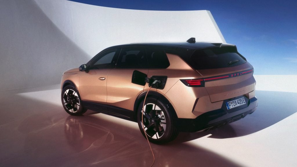 The vehicle’s STLA Medium-based architecture provides a more athletic, planted appearance. The design is all clean lines layered with light and shadow, and the two-tone floating roof provides some elegance and visual relief. At the back, “VAUXHALL” is written out full across the centre of the boot, flanked by slim LED tail lights reminiscent of the signature of the front lighting. The whole is very convincing and achieves a good balance between rugged, off-road elements and polished, aerodynamic automotive styling.